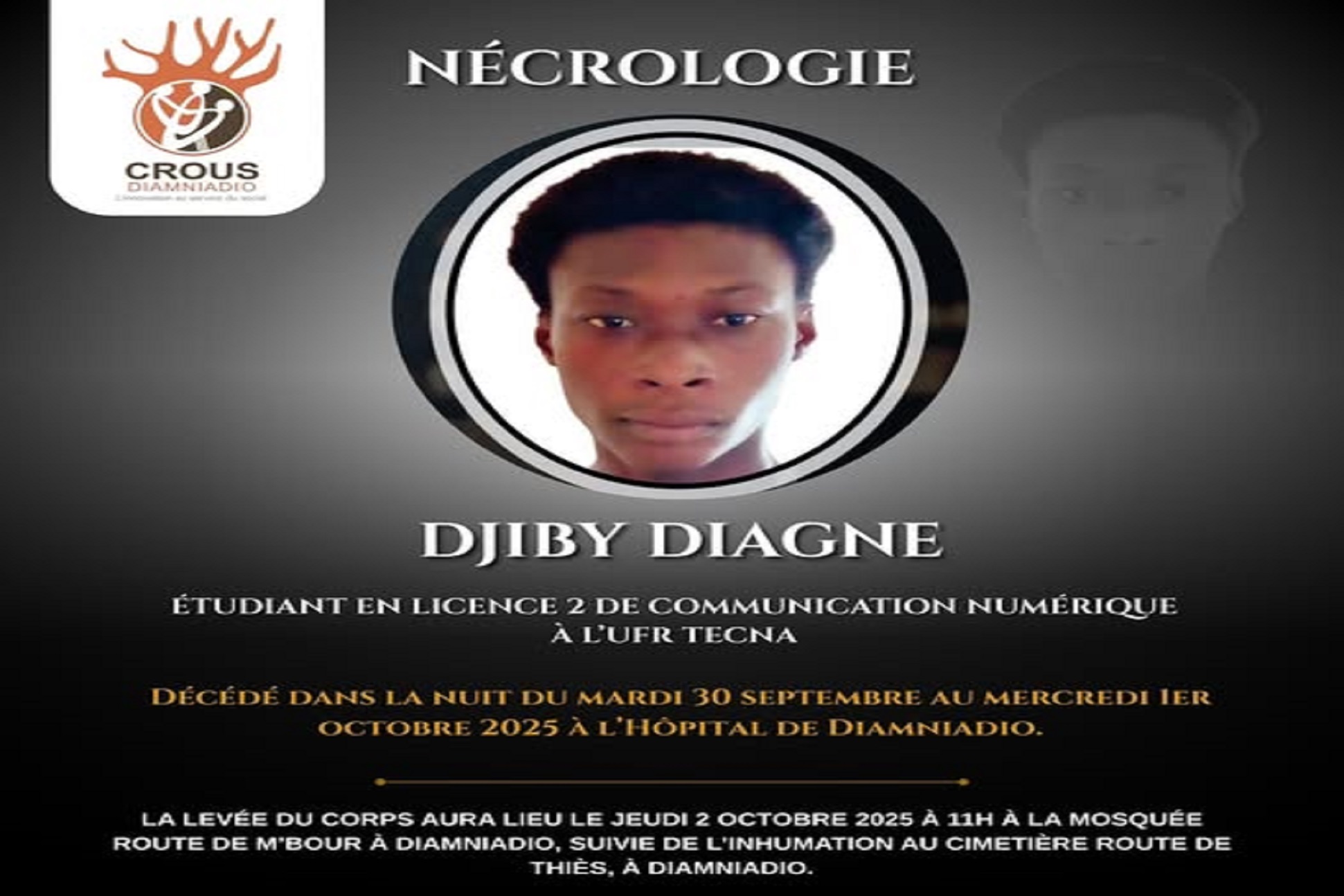 C’est avec une immense tristesse et une profonde consternation que la Direction du Centre Régional des Œuvres Universitaires Sociales (CROUS) de Diamniadio a appris le rappel à Dieu de...